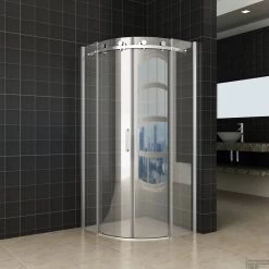 Douchecabine Sapho Lucis Line Halfrond Schuifdeuren 100×100 Cm 6 Mm Antidrop Helder Glas