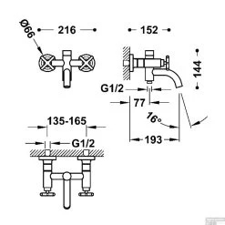 Bad- En Douchemengkraan Tres Mont Blanc 2-Kruisgreep Met Staafhanddouche Chroom