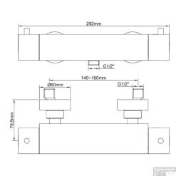 Douchethermostaat Hotbath Amice Opbouw Onderaansluiting 2-kruisgreep Chroom