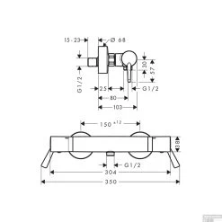 Hansa Tempra Style Douchethermostaat Sprong 151 Mm. Met S-kopp. Chroom