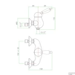 Opbouw Douchekraan Sapho Antea Mengkraan 2-knop Klassiek Chroom