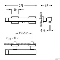 Douchethermostaat 3-Wegs GRB InCool Horizontaal Met Douche Aansluiting Messing Zwart (dummy)