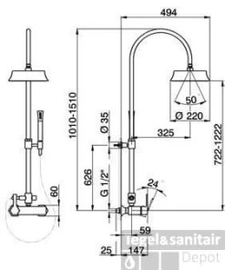 BWS Regendouche | Colorato | Hoofddouche 22cm Vierkant | Chroom | Opbouw