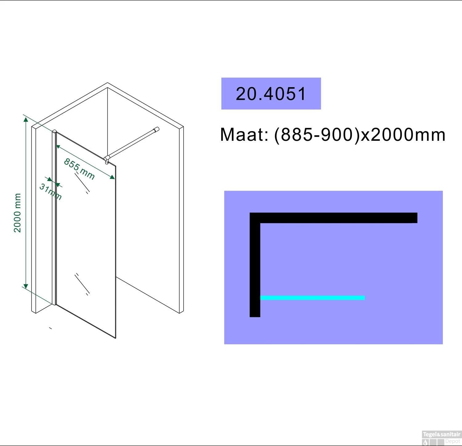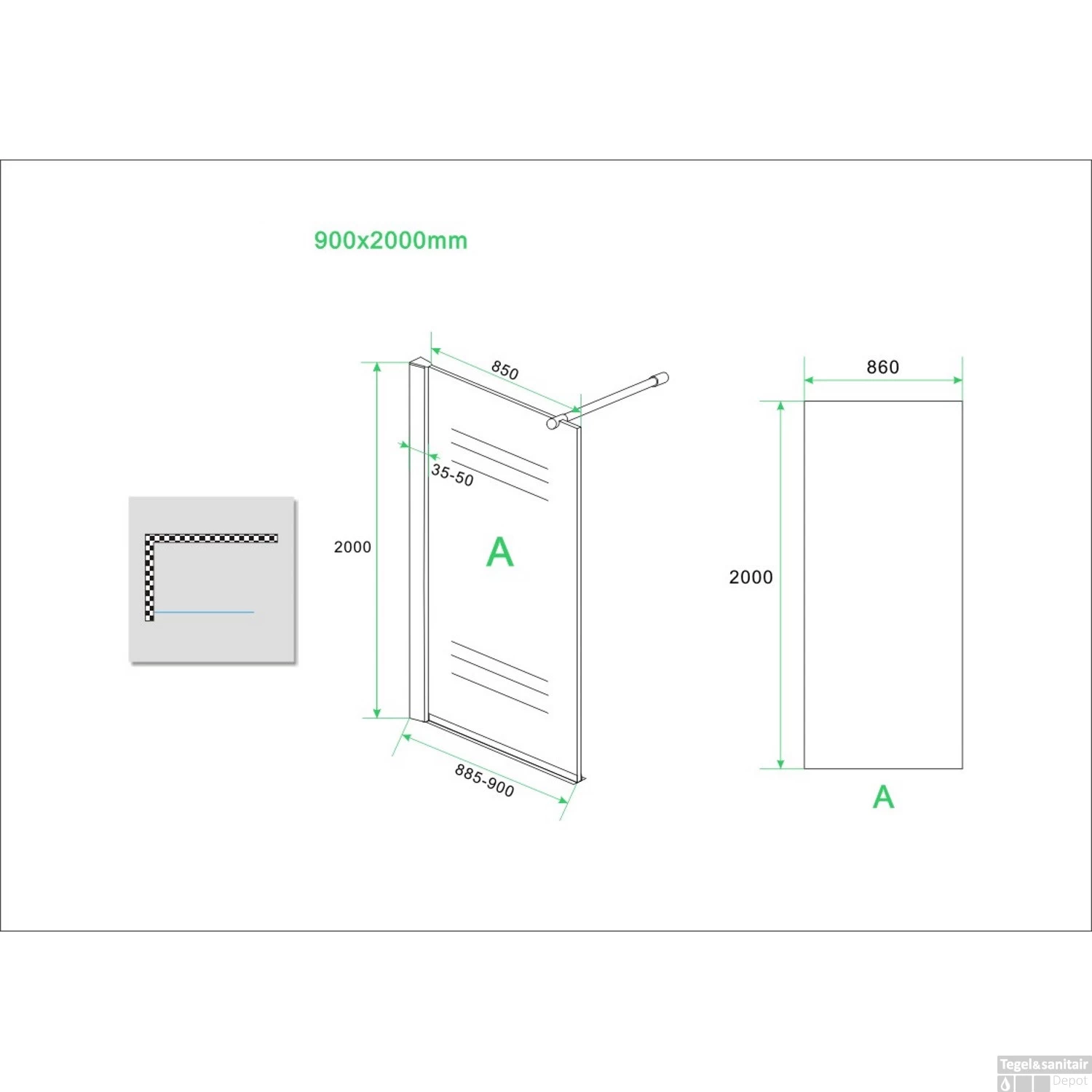Belangrijk: Omdat de inloopdouche ook op een douchebak te plaatsen is zijn de afmetingen 2 á 3 cm kleiner als aangegeven op de specificaties.