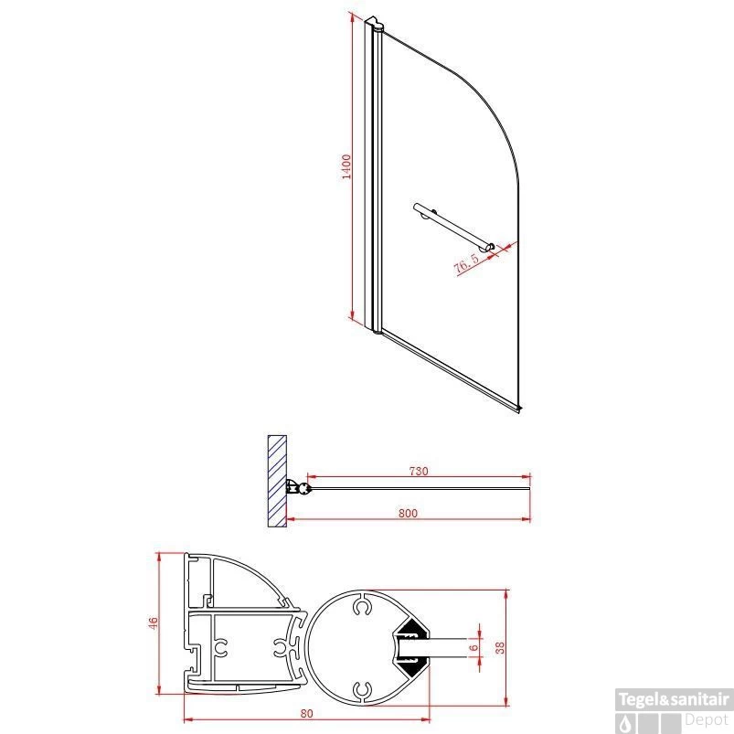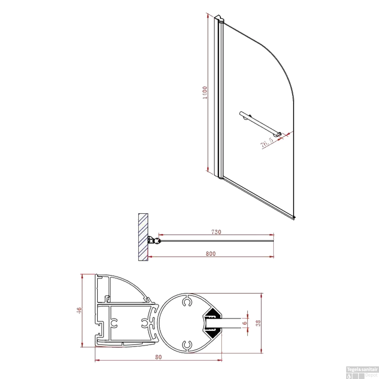 Badwand Boss & Wessing Bibi Afgerond 80x140cm Scharnierend Omkeerbaar 6mm