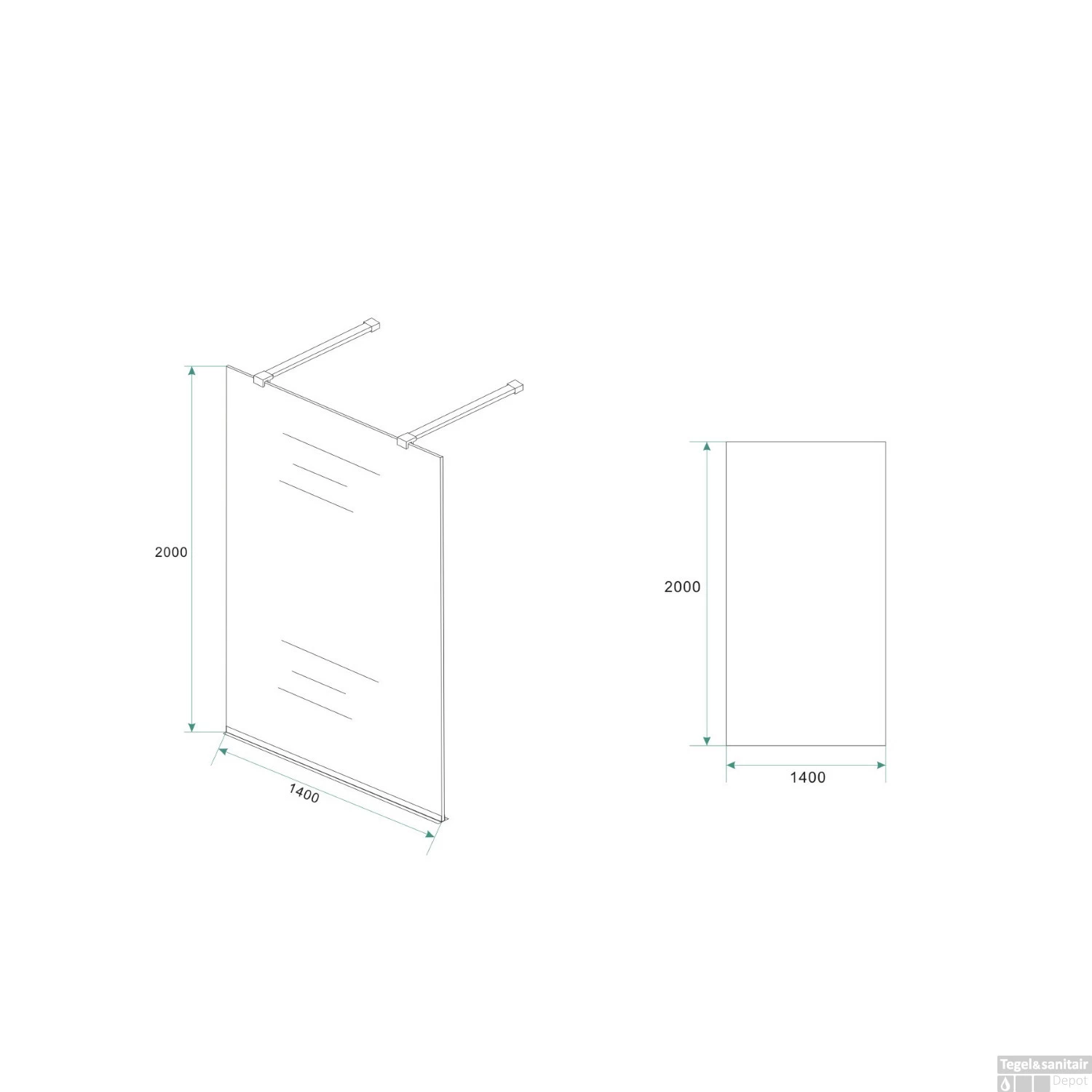 BWS Vrijstaand Douchewand 140x200cm 8mm NANO Coating