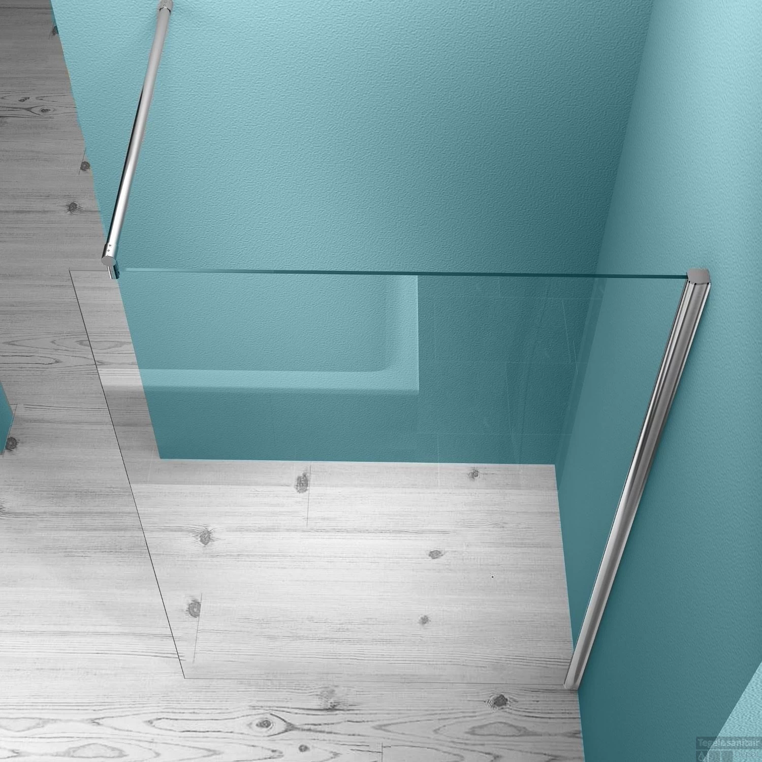 De douchecabine is voorzien 8mm dik veiligheidsglas.Omdat de douchewand geen vloerbevestiging onder het vaste deel heeft, kunt u direct na het plaatsen dit deel transparant afkitten op de vloer. Ook is het mogelijk om de wand op een douchebak te plaatsen.