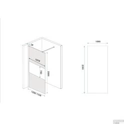 De douchecabine is voorzien 8mm dik veiligheidsglas. De douchewand heeft geen vloerbevestiging, waardoor u de wand direct na het plaatsen transparant kunt afkitten.