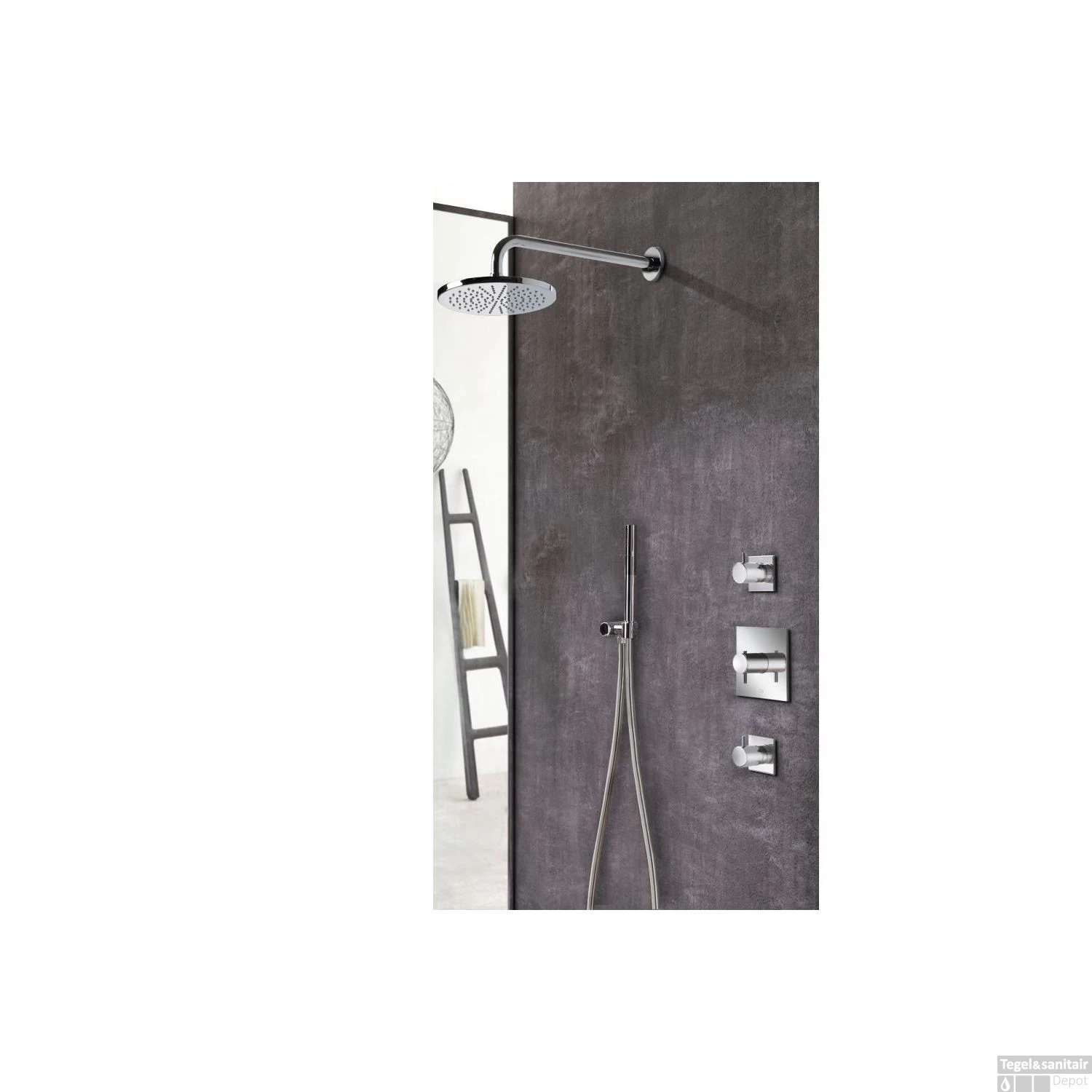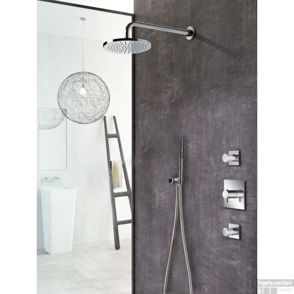 De Hotbath IBS 2 doucheset is ontwikkeld volledig in stijl van de Laddy serie. Deze set wordt compleet geleverd met inbouwthermostaat met 2 losse stopkranen, handdouche en hoofddouche. De thermostaat en stopkranen beschikken over vierkante achterplaten.