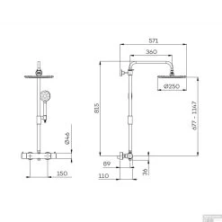 De douchearm is vervaardigd uit messing en heeft een prachtige gunmetal kleur. Bij de plafonduitloop wordt standaard een rozet geleverd. De aansluitmaat is 1/2″.