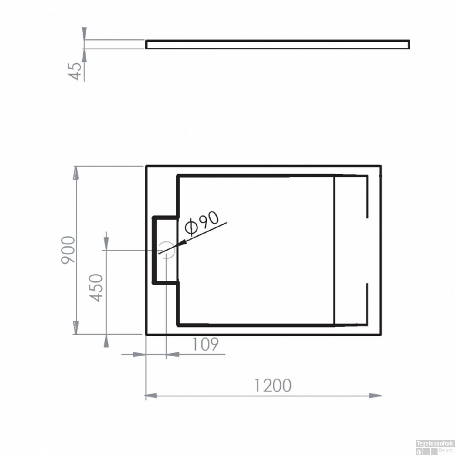 - – Diameter afvoergat: 90 mm