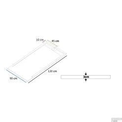 De douchebak is 120 cm breed en 90 cm diep. De bak is 3 cm hoog.