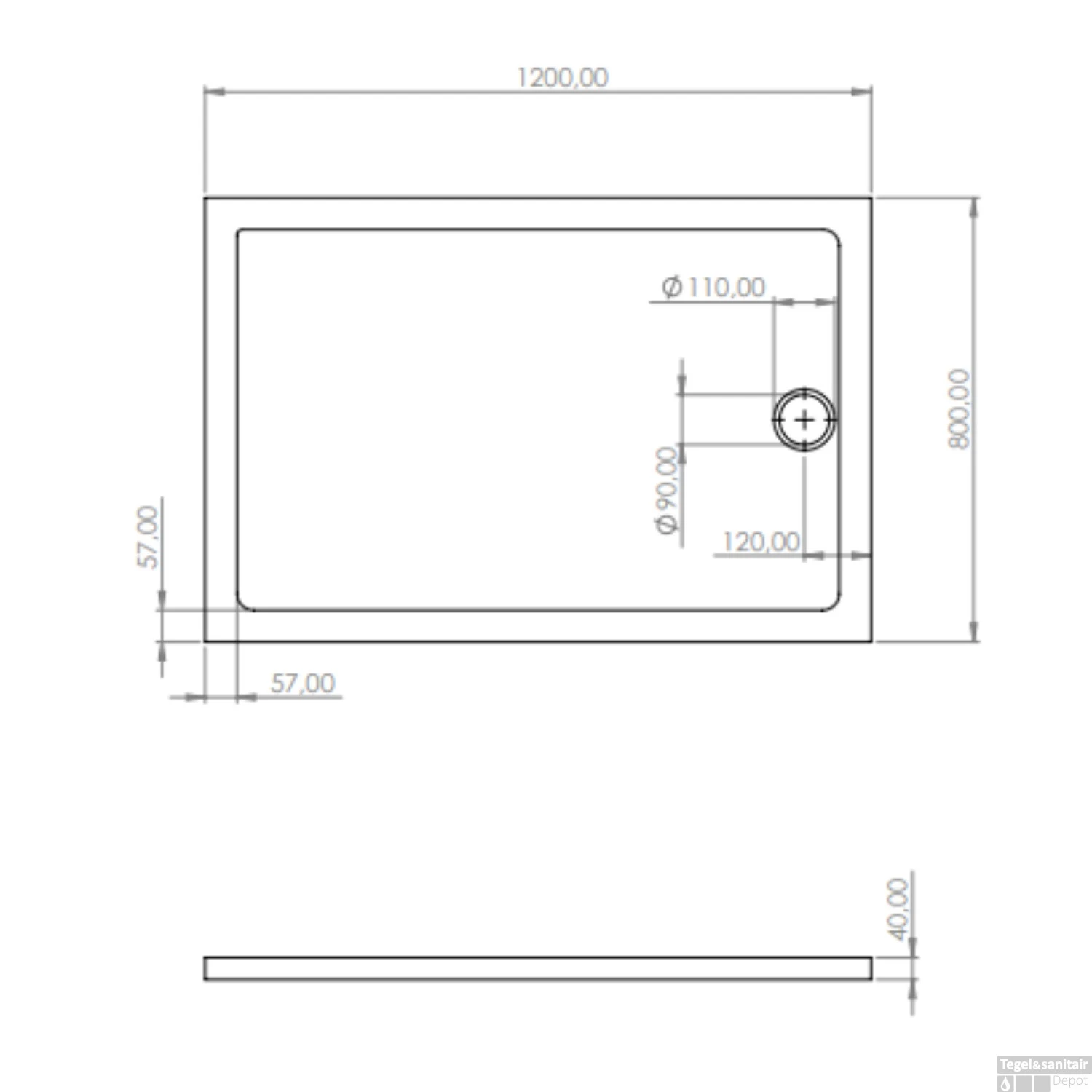 Specificaties Douchebak BWS Rechthoek Zelfdragend Acryl 120x80x4cm Wit: