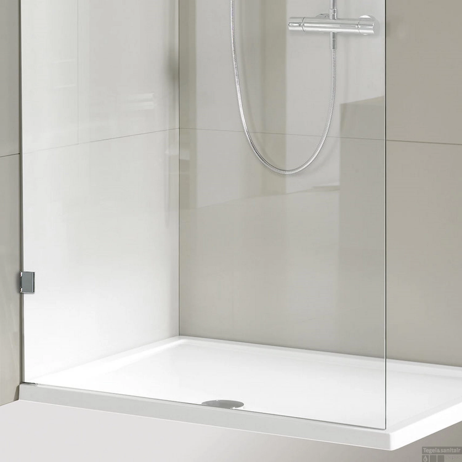 De douchebak is gemaakt van acryl en afgewerkt in glanzend wit.