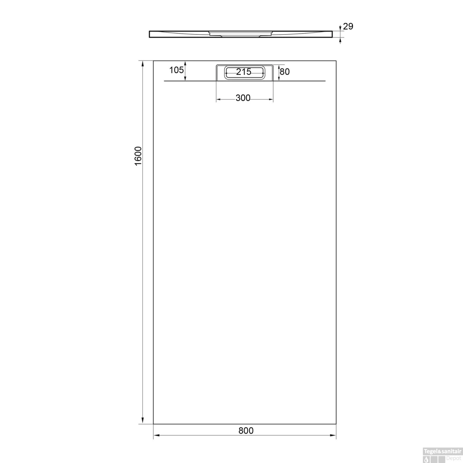 De afmetingen van de bak zijn 160 bij 80 en de hoogte van de bak is 2,9 cm. De bak is hersnijbaar.