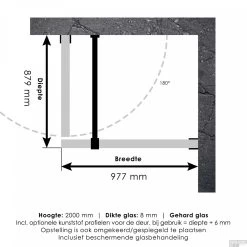 Deze complete douchecabine bestaat uit een inloopwand en een draaideur met Goud beslag. Inclusief glasbehandeling en optionele kunststof profielen. De hoogte van de douchecabine is 200 cm. De cabine is 97,7 cm breed en 87,9 cm diep. Deze douchecabine straalt luxe uit door zijn design en kleur.