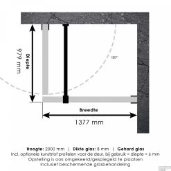 Deze complete douchecabine bestaat uit een inloopwand en een draaideur met RVS beslag. Inclusief glasbehandeling en optionele kunststof profielen. De hoogte van de douchecabine is 200 cm. De cabine is 137,7 cm breed en 97,9 cm diep. Deze douchecabine straalt luxe uit door zijn design en kleur.