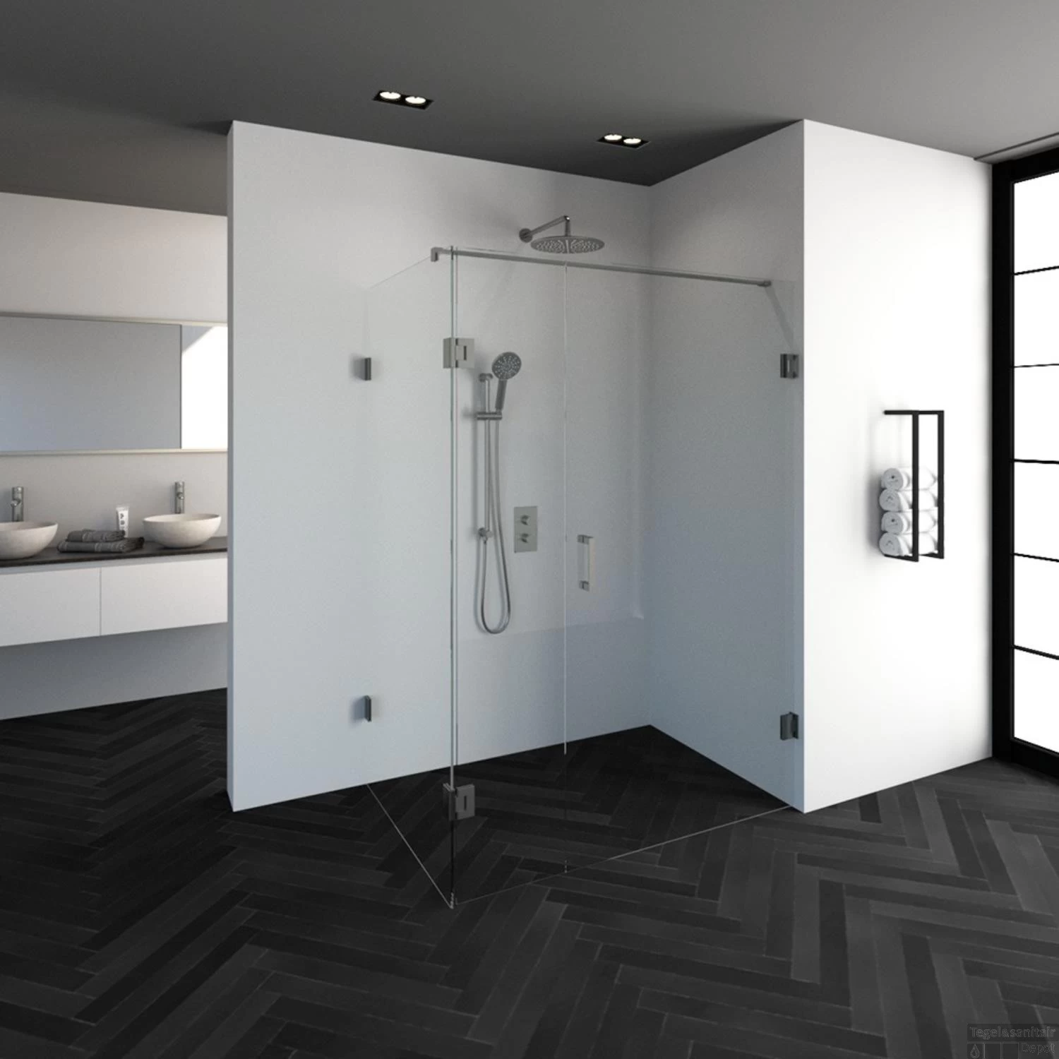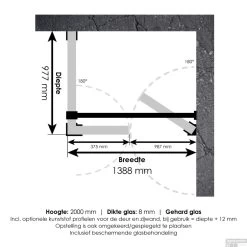 Deze complete douchecabine bestaat uit een inloopwand, zijwand en draaideur en RVS beslag. Inclusief glasbehandeling en optionele kunststof profielen. De hoogte van de douchecabine is 200 cm. De cabine is 97,7 cm breed en 138,8 cm diep. Deze douchecabine straalt luxe uit door zijn design en kleur.
