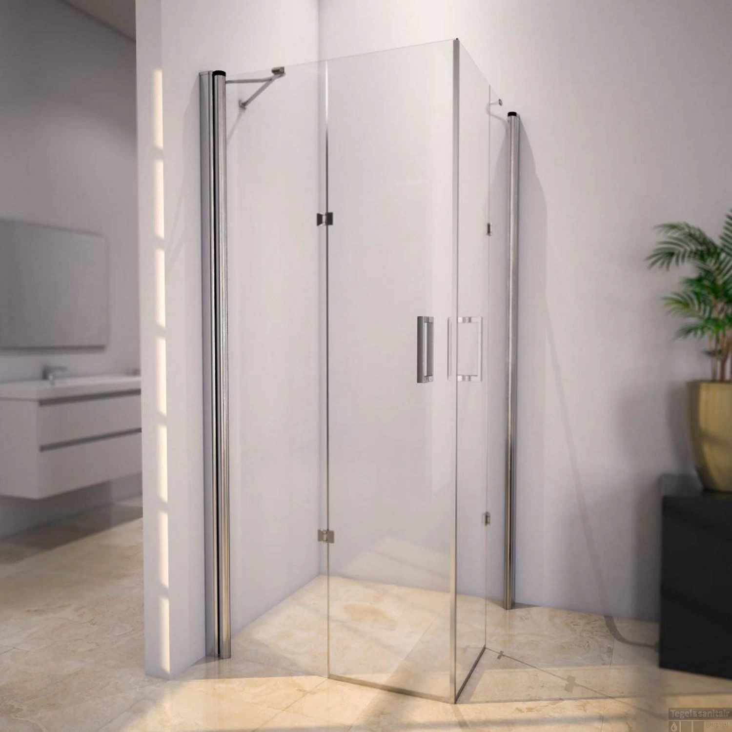 Douchecabine Sanilux Hoek vierkant met hoekinstap 90x90cm 8mm