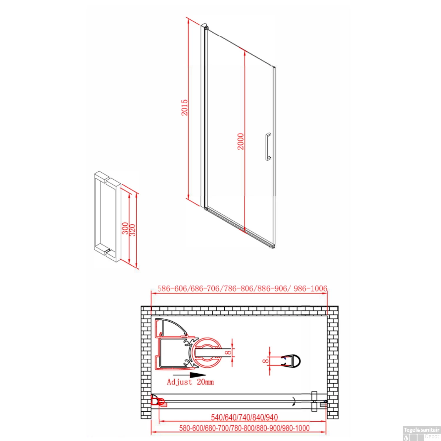 Specificaties Douchedeur Boss & Wessing Ironside 60×200 cm Draaideur 8mm Veiligheidsglas RVS Look: