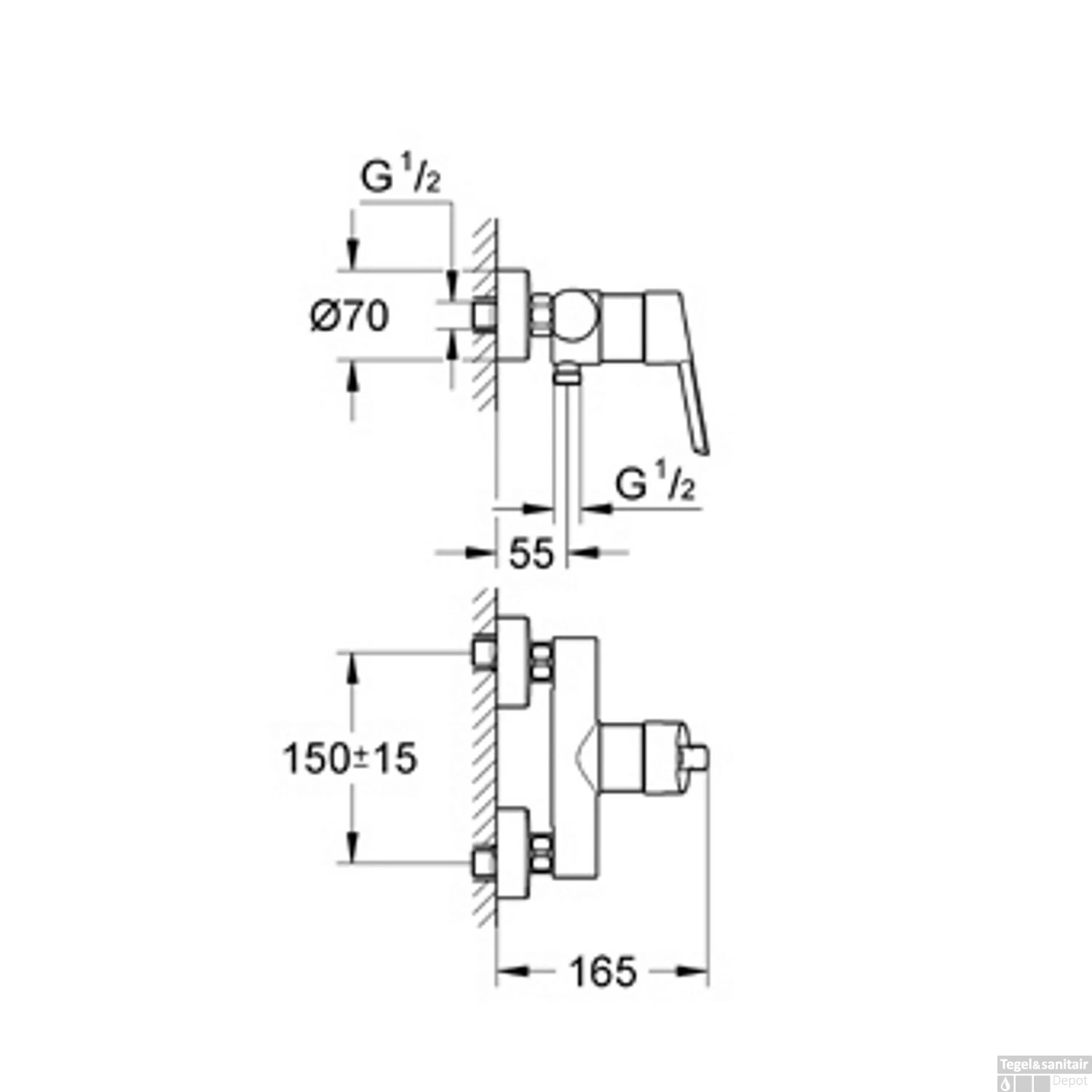 - Draadaansluiting aanvoer: 1/2″