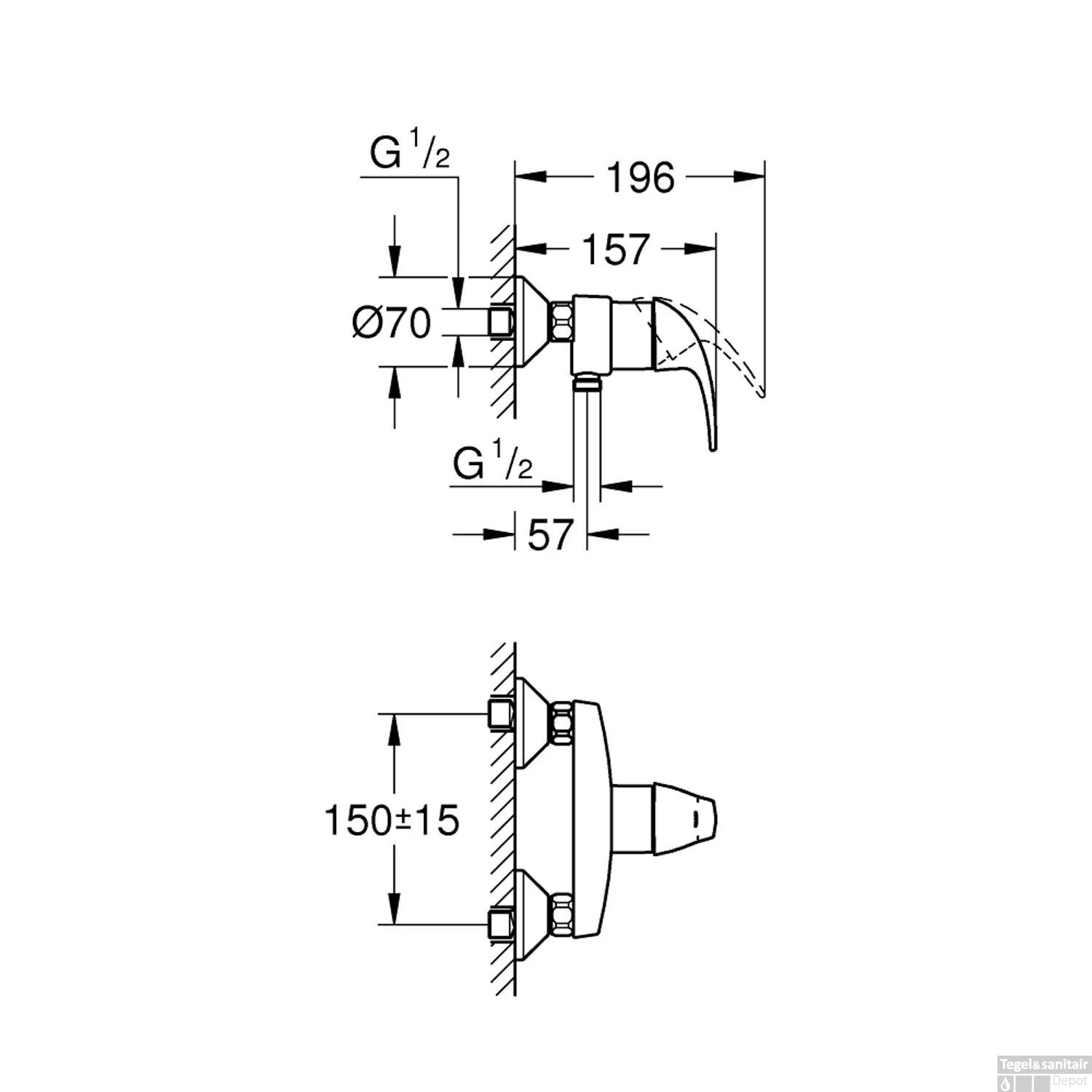 Specificaties Douchekraan Grohe Start Curve zonder Omstel met Koppelingen Chroom: