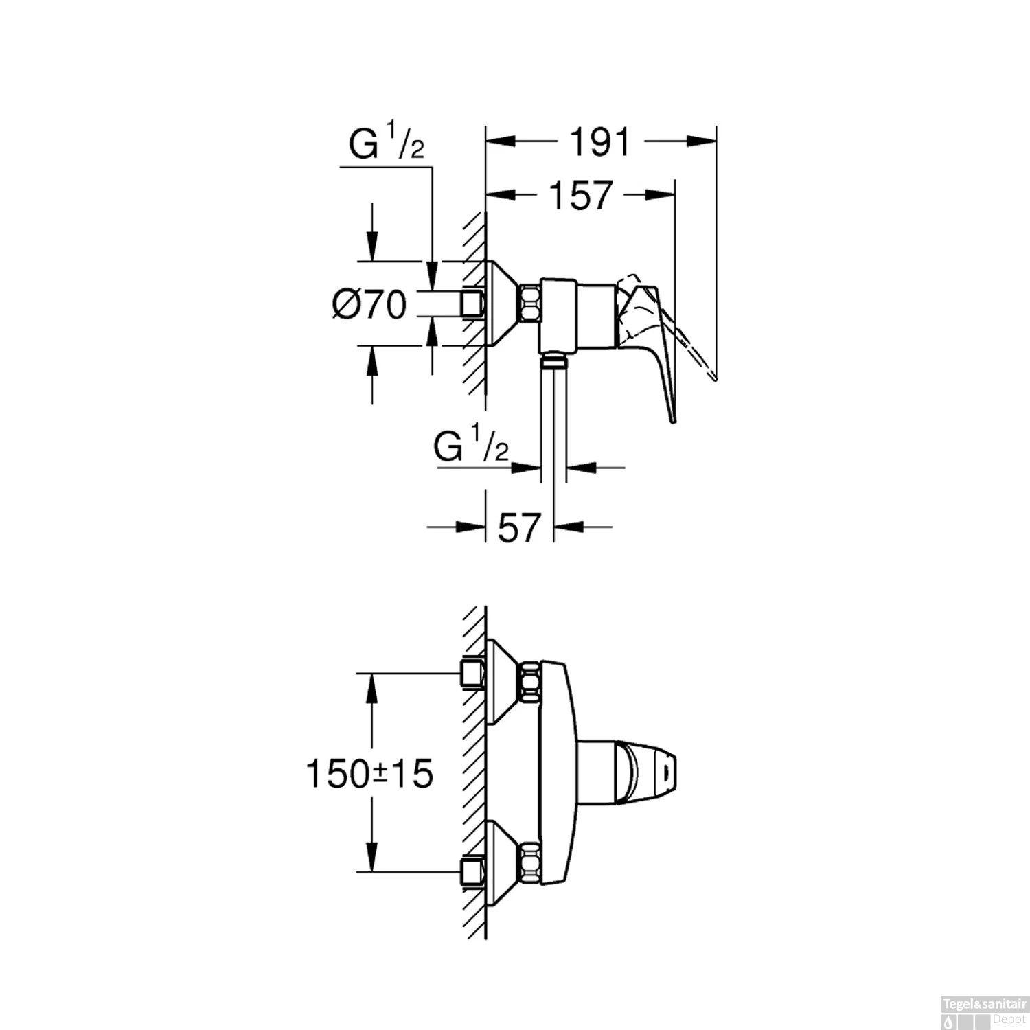 - Draadaansluiting aanvoer: 1/2″