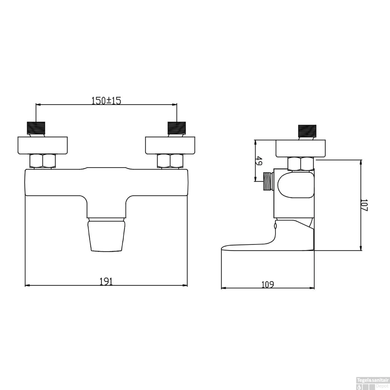 De kraan heeft een hoogte (inclusief hendel) van 10.9 cm en een breedte van 19.1 cm. De kraan komt 10.7 cm van uw douchewand af. Maak uw badkamer compleet met de andere producten van de serie Aloni.