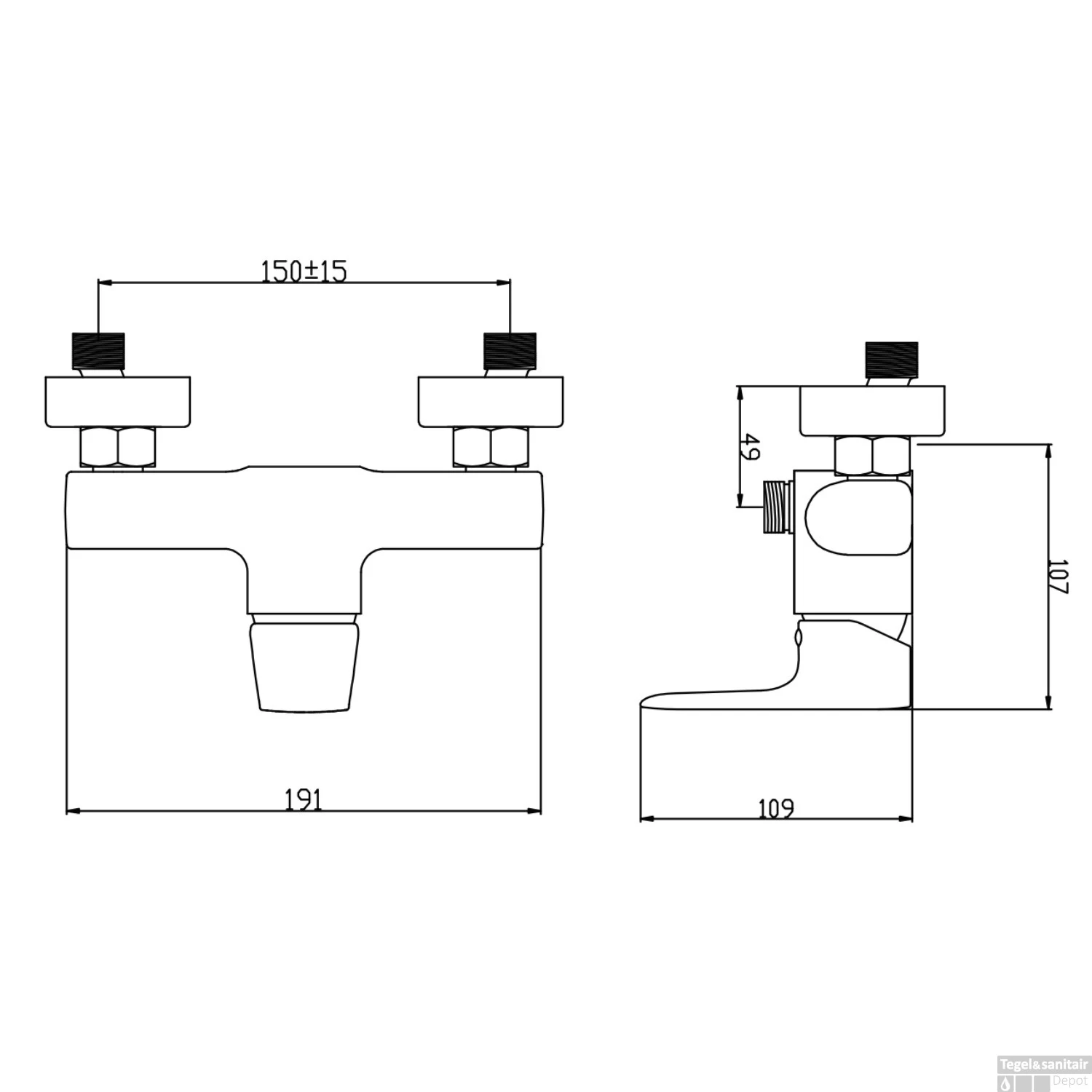 De kraan heeft een hoogte (inclusief hendel) van 10.9 cm en een breedte van 19.1 cm. De kraan komt 10.7 cm van uw douchewand af. Maak uw badkamer compleet met de andere producten van de serie Aloni.