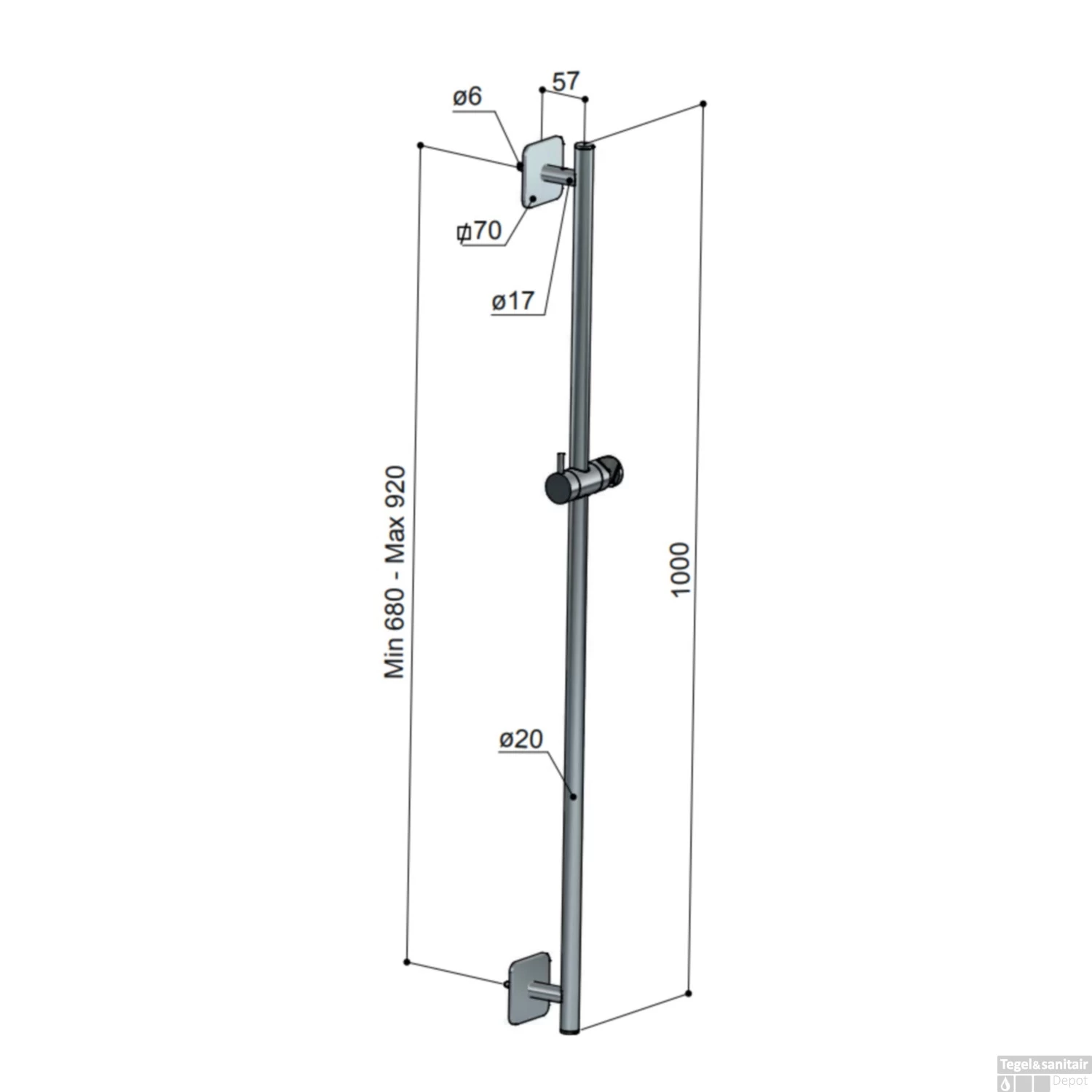 Deze glijstang van Hotbath is gemaakt van messing materiaal en uitgevoerd in een mat zwarte kleur. Met zijn lengte van 100 cm is de glijstang altijd in een goede hoogte te verstellen. Deze glijstang is eventueel te monteren op reeds bestaande boorgaten.