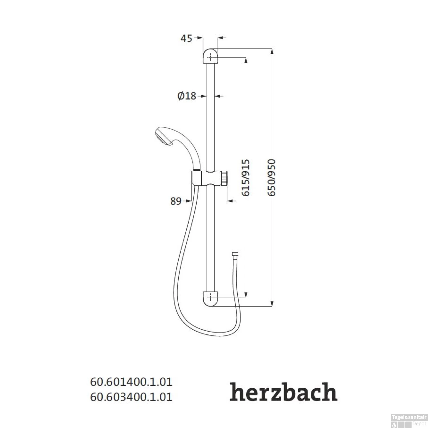 Specificaties Glijstangset Herzbach Modena 90 cm met Handdouche Chroom: