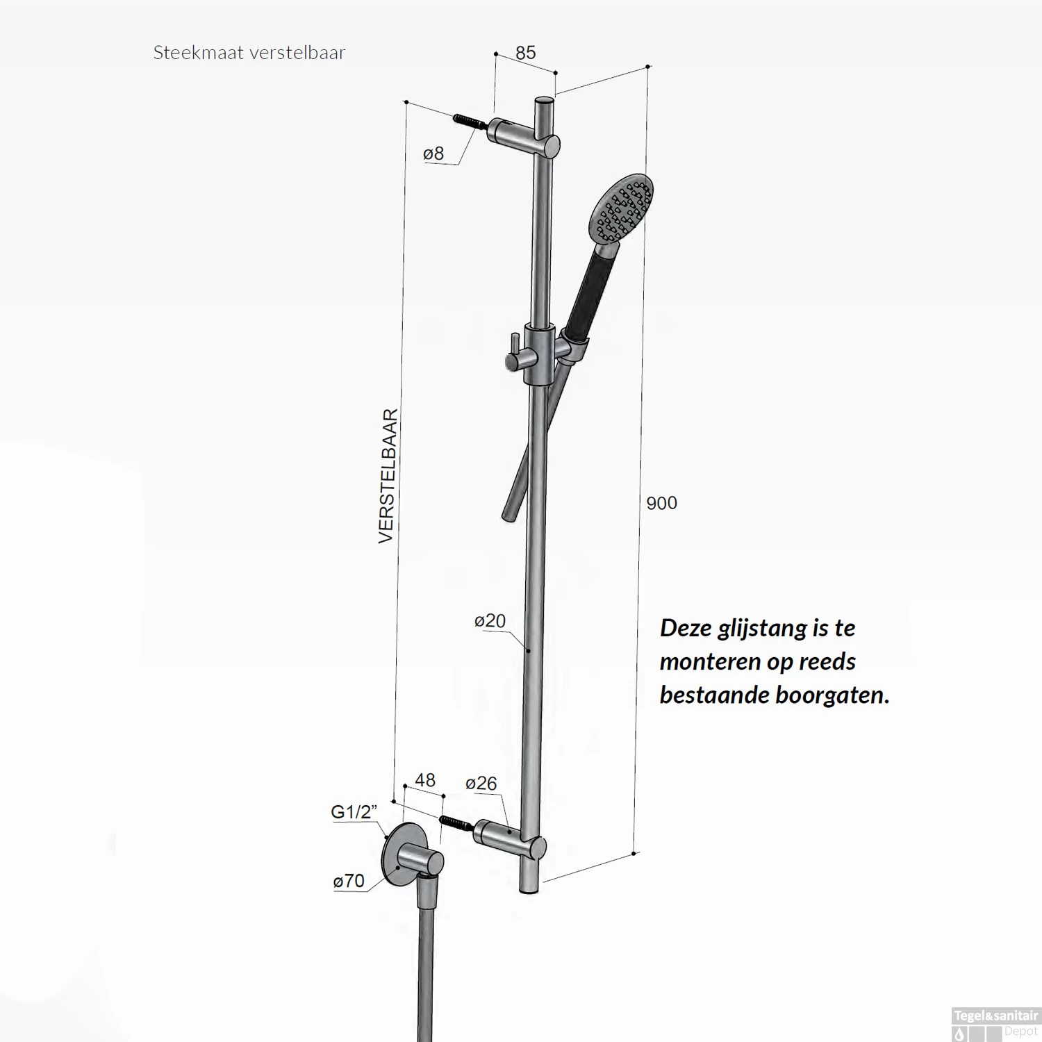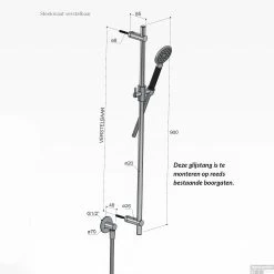 Deze design glijstangset is hoogst waarschijnlijk precies de afwerking die u zoekt in uw badkamer. Net zoals de rest van de Hotbath Cobber serie is ook deze glijstang de eyecatcher van uw badkamer. De set heeft een 1/2″ set aansluiting. De stang zelf heeft een lengte van 90 cm en de aansluitpunten zijn verstelbaar over de lengte van de stang. De set bevat een wandaansluitbocht, doucheslang en handdouche met 1 douchestand.