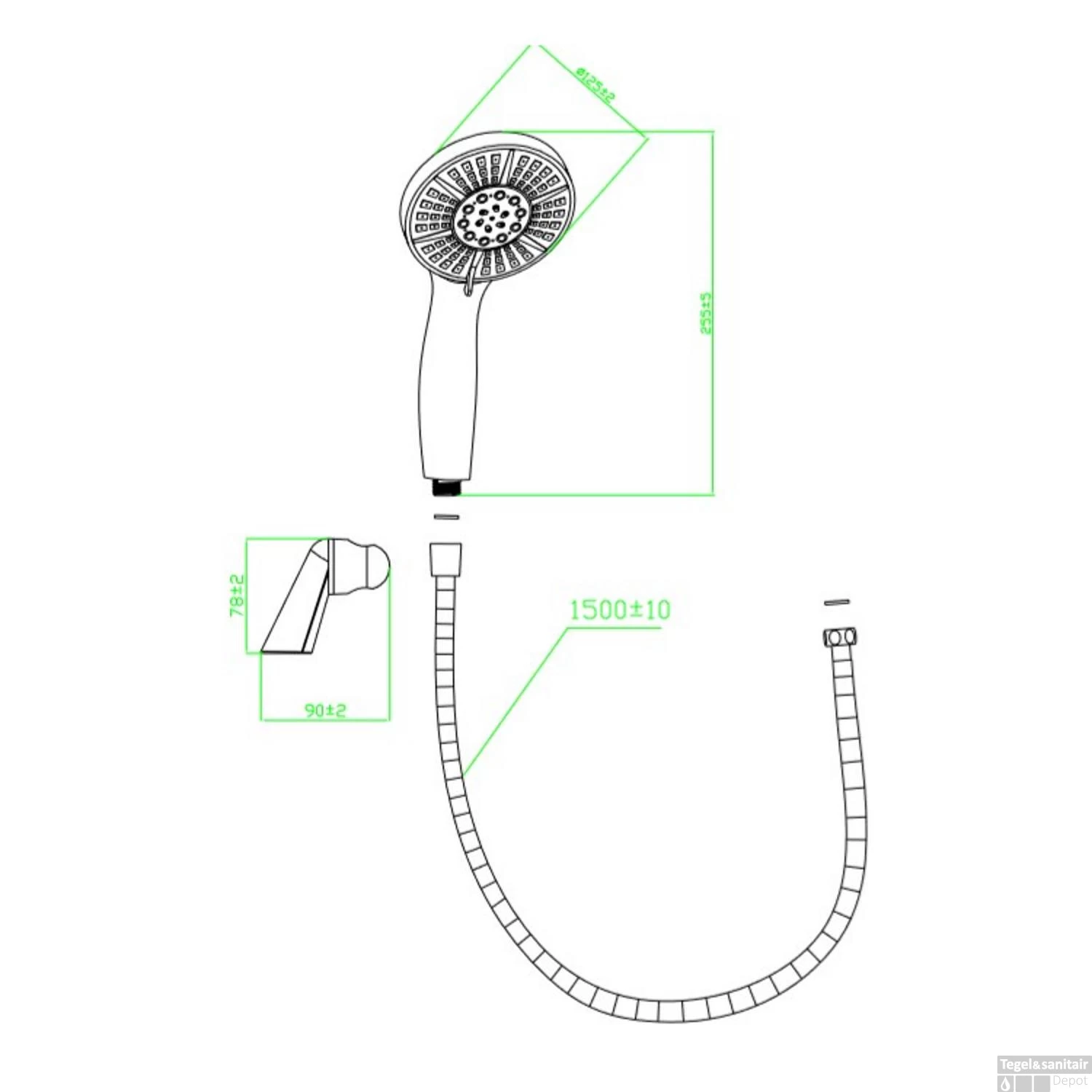 De Adria handdoucheset van het merk Schutte is inclusief handdouche, douchehouder en een doucheslang van 150 cm met een chromen afwerking. De handdouche beschikt over vijf straalsoorten en een waterbesparende functie. Daarnaast bevat de handdouche antikalk nozzles waar kalk zich niet aan kan hechten. De chromen handdouche heeft een diameter van 12.5 cm en is voorzien van een 1/2 aansluiting.