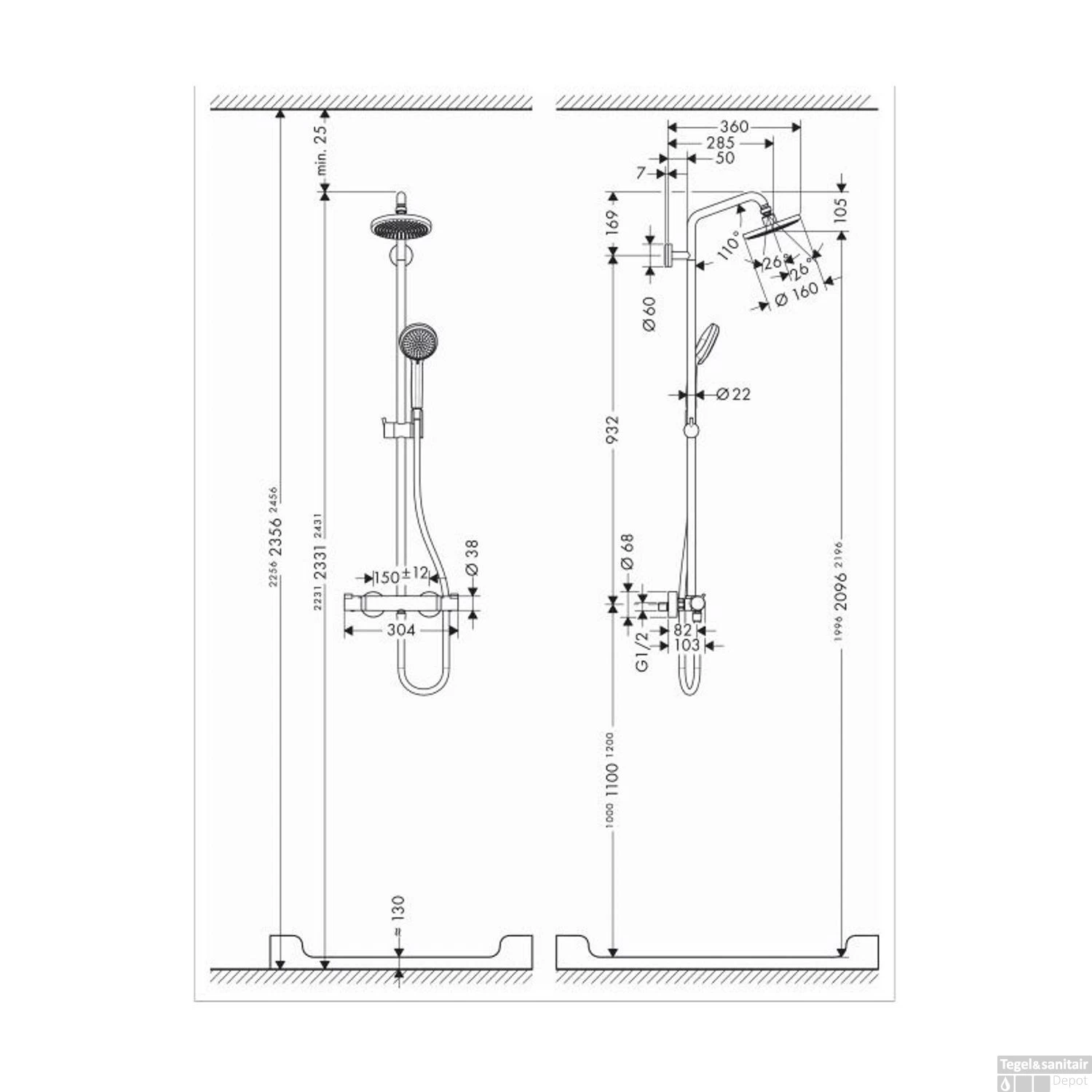 Specificaties Hansgrohe Croma Regendouche Opbouw 160 Met EcoStat Comfort Chroom