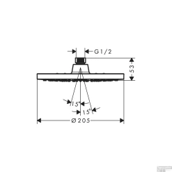 Geniet van een heerlijke douche met de hoofddouche uit de Vernis Blend collectie van HansGrohe. Met deze XXL douchekop zult u maximaal doucheplezier beleven. U wordt als het ware omhult met een waterdeken. De Rain straal geeft een fijne brede straal en is krachtig genoeg om bijvoorbeeld de shampoo uit uw haar te spoelen. De straalplaat heeft een diameter van maar liefst 205 millimeter. Dankzij het kogelgewricht in de kop is de straalhoek van de hoofddouche naar wens verstelbaar.