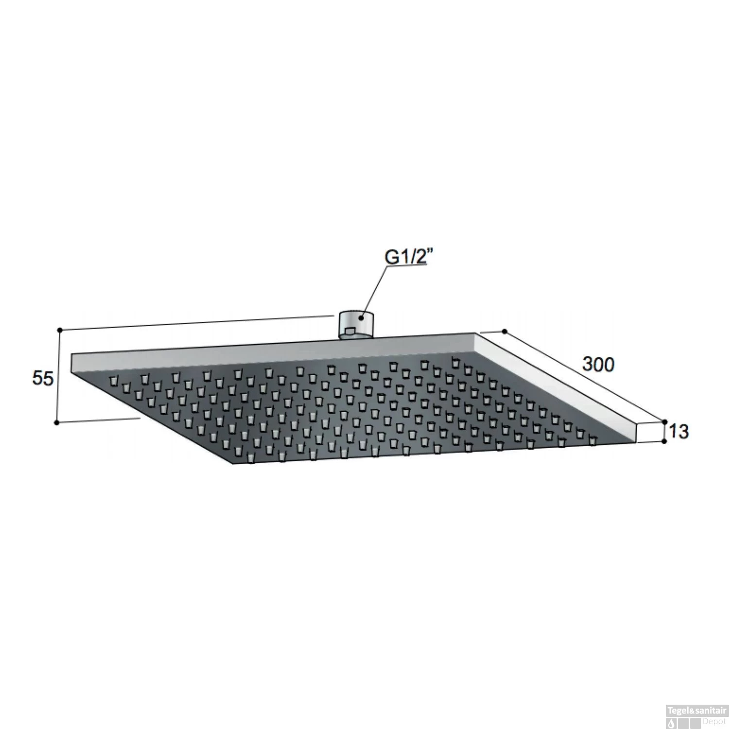 Specificaties Hoofddouche Hotbath Mate 30×30 cm Vierkant Opbouw Chroom
