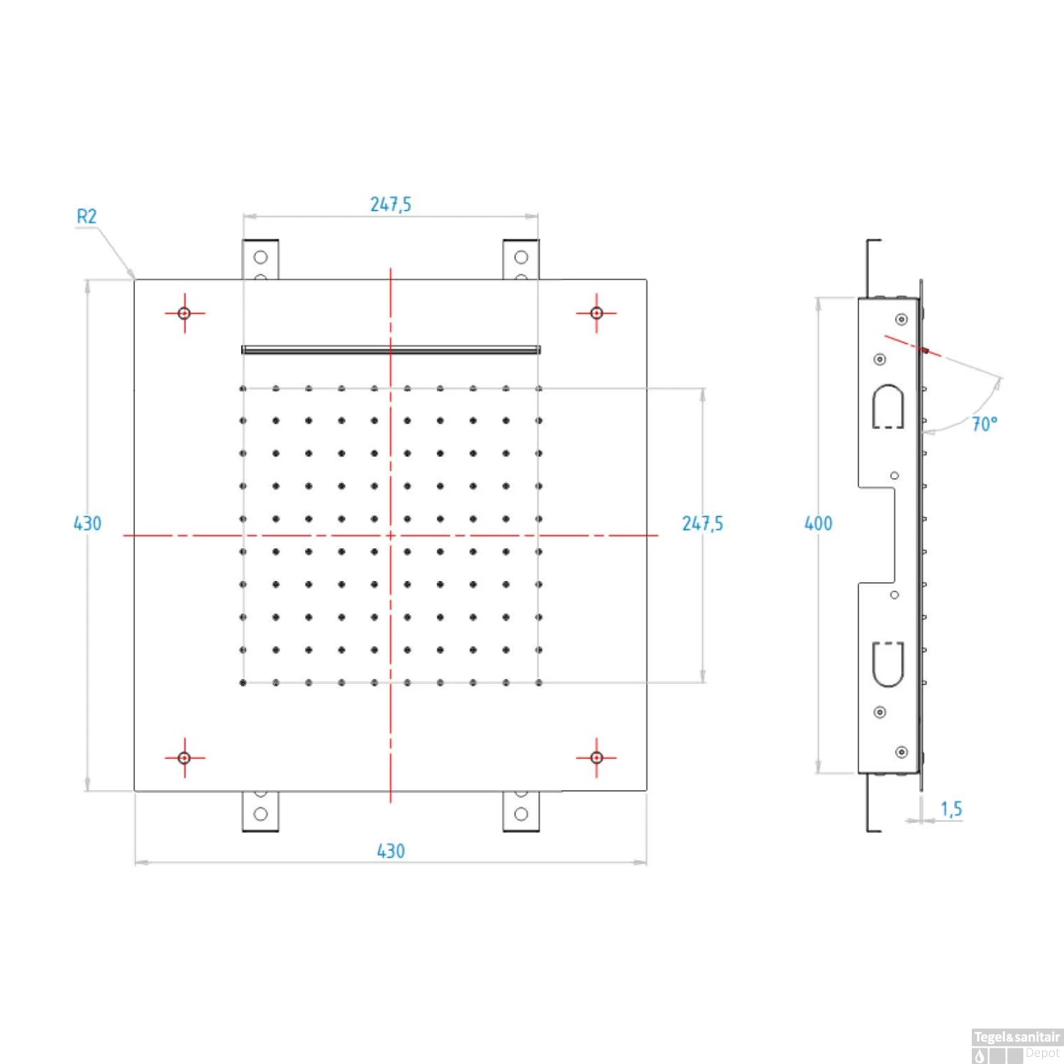 Specificaties Hoofddouche Showerlicious Lagoo Nesso met Cascade 43 x 43 cm RVS Chroom: