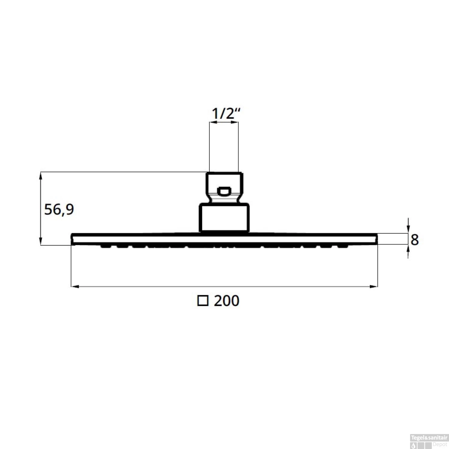 Op zoek naar een hoofddouche voor bij uw regendouche? Kies dan voor de Living Spa hoofddouche van het merk Herzbach! Deze hoofddouche is gemaakt van verchroomd messing en is vierkant van vorm. De vierkante hoofddouche heeft een afmeting van 20×20 cm. De regendouche heeft bij een druk van 3 bar een waterafvoer van 12 tot 14 liter per minuut. De hoofddouche beschikt over een 1/2”-aansluiting dus is te combineren met vrijwel elke plafond- of wandarm.