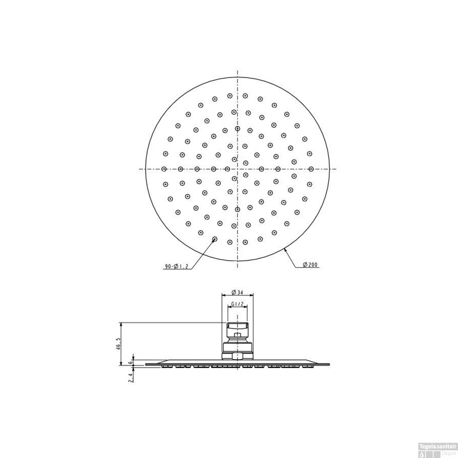 Specificaties Hoofddouche Wiesbaden Caral UFO Rond 20 cm Chroom