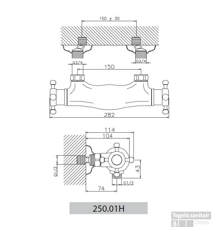 Huber Victorian Thermostatische Douchekraan RVS 25001HNS