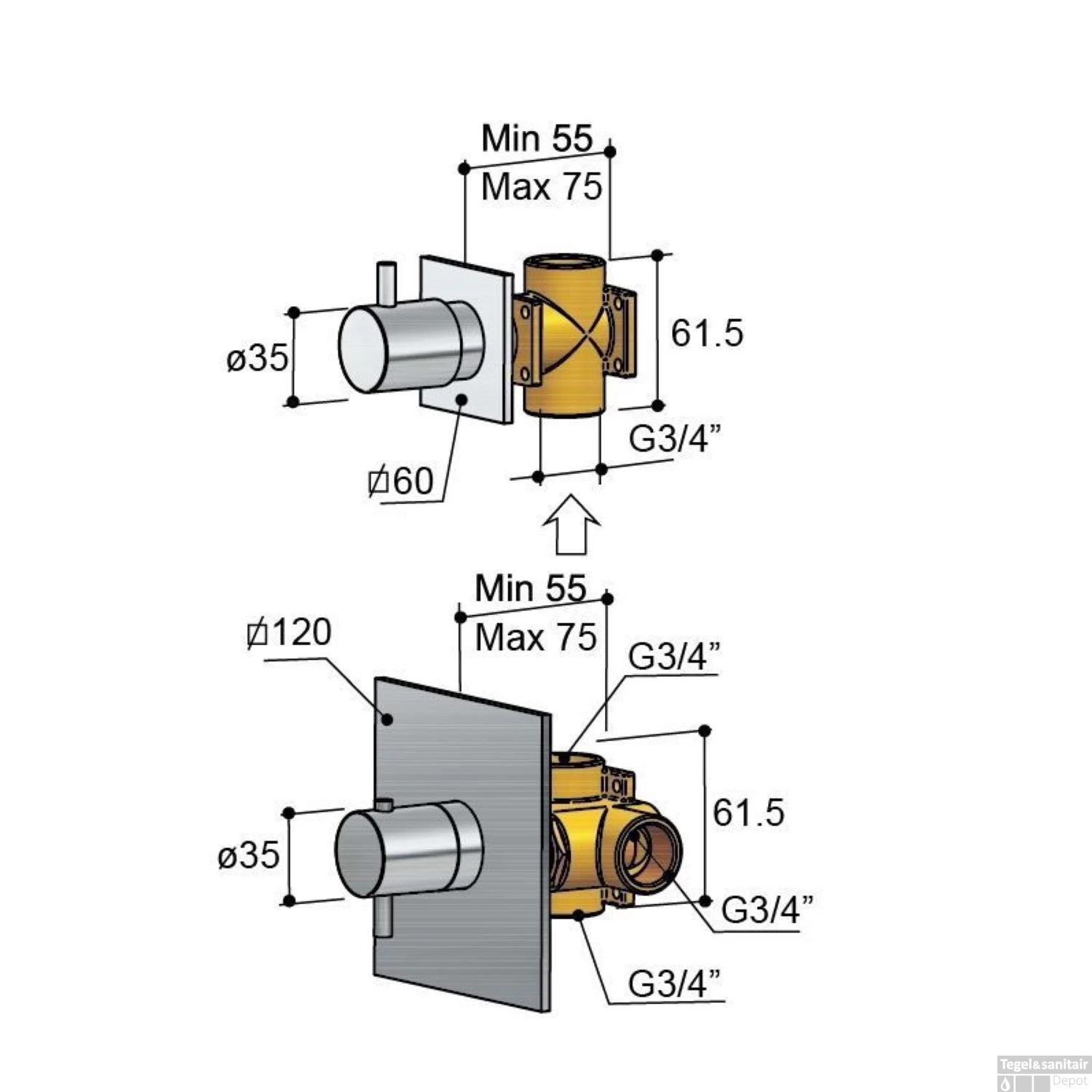 Specificaties Inbouw Douchekraan Hotbath Laddy Thermostaat Met Stopkraan Vierkant Chroom: