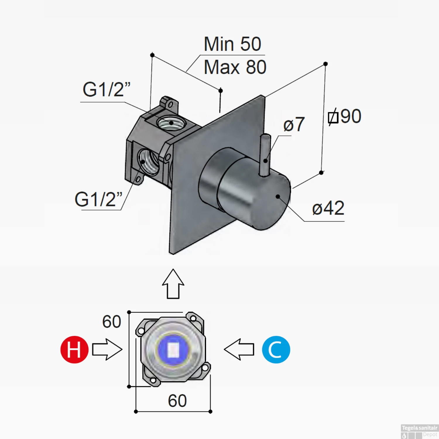 Specificaties Inbouw Douchemengkraan Hotbath Cobber 1-hendel Vierkant Chroom:
