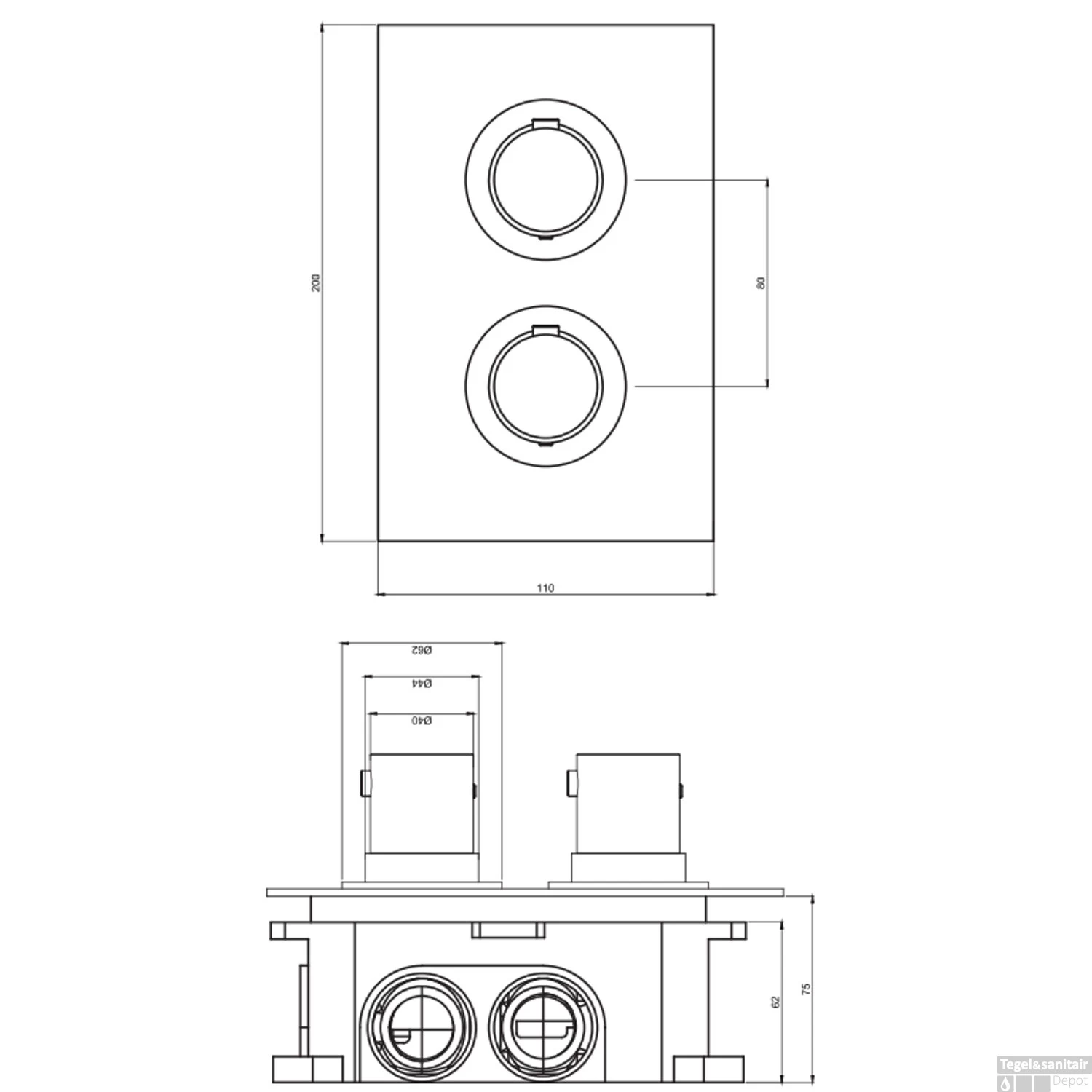 De douchethermostaat wordt geleverd inclusie inbouwbox. De afdekplaat van de kraan heeft een hoogte van 20 cm en een breedte van 11 cm. De knoppen hebben een diameter van 4 cm. De kraan is ook verkrijgbaar in de kleuren mat zwart, chroom en geborsteld RVS look.
