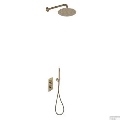 Met de inbouw regendoucheset Colorato van het merk Boss & Wessing haalt u een complete doucheset in huis! De inbouw regendoucheset bestaat uit een thermostatische kraan, een wanduitloop met een ronde hoofddouche en een handdoucheset. Alle elementen uit de Colorato inbouw regendoucheset zijn gemaakt van messing en kennen een afwerking in een geborstelde gouden kleur.