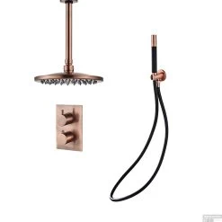 De Copper Pro inbouw regendoucheset is een absolute lust voor het oog te noemen. De elementen uit deze regendoucheset hebben een afwerking in de kleur geborsteld koper, terwijl de doucheslang en handdouche een afwerking in een zwarte kleur hebben. Zo wordt een bijzonder stijlvolle en moderne sfeercombinatie gecreëerd die u zelden in de badkamer terugziet!