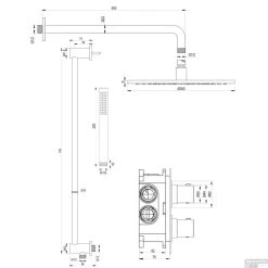 De set bestaat uit een inbouwthermostaat, een afbouw deel van de thermostaat kraan, een wandarm, een hoofddouche met een diameter van 30 cm, een handdouche inclusief glijstang en doucheslang. De thermostaatkraan, met 3/4” aansluiting, is eenvoudig te bedienen door de twee knoppen. Met de onderste knop kunt u eenvoudig de temperatuur van het water instellen. De thermostaat beschikt over een kinderbeveiliging bij 38 graden, waardoor u nooit per ongeluk onder een kokend hete douche zat staan. met de bovenste knop bepaalt u de gewenste douchstand en kunt u switchen tussen de hoofd- en handdouche.