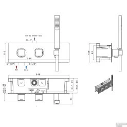 Specificaties Inbouw Thermostatische Douchekraan 2-Weg Mat Zwart (incl. handdouche) Sapho Dimy: