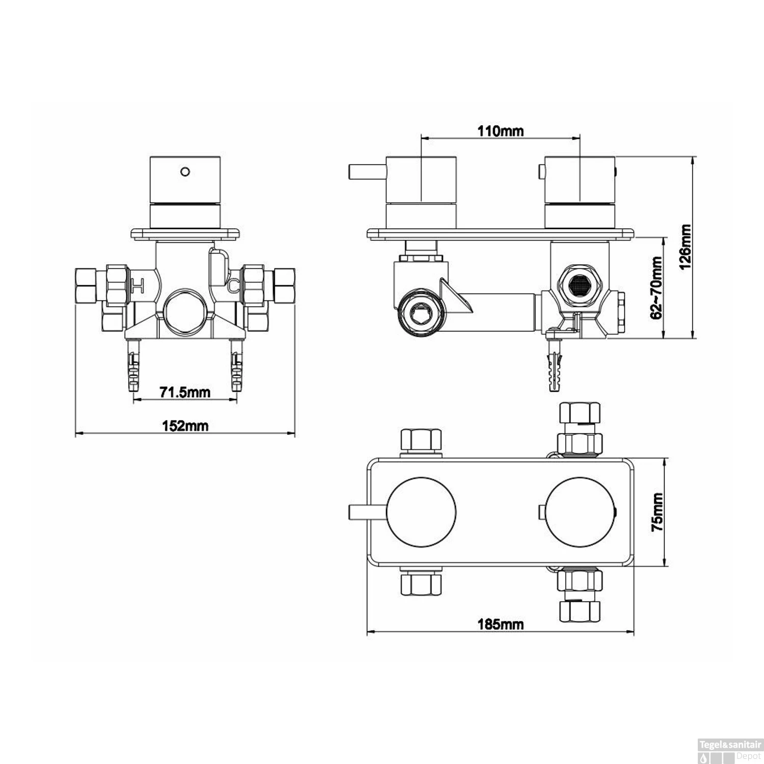 Specificaties Inbouwthermostaat Boss & Wessing Caral 2-weg Rond Mat Zwart: