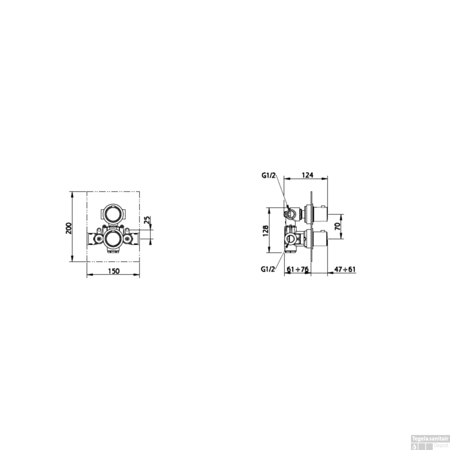 De inbouwthermostaat is 15 cm breed, 20 cm lang en het heeft prachtige goud geborstelde afwerking. Verder is de inbouwthermostaat perfect te combineren met andere goud geborstelde artikelen van Salenzi.