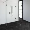 De douchecabine is voorzien 8mm dik veiligheidsglas. De douchewand heeft geen vloerbevestiging, waardoor u de wand direct na het plaatsen transparant kunt afkitten.